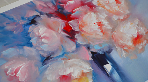Оттаявшие пионы, картина маслом и мастихином.