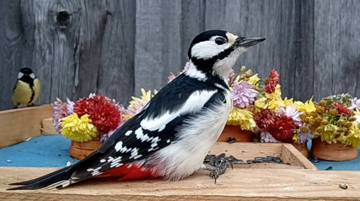 Столовая для птиц (17.11.2024 года) - Дятлы и Сойки посетили кормушку