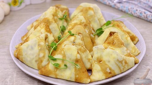 Интересная форма, вкусная начинка. Блины с грибами и курицей