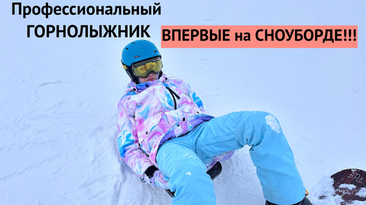 Спортсмен ГОРНОЛЫЖНИК в первый раз на СНОУБОРДЕ. ЛЫЖИ vs СНОУБОРД 😁
