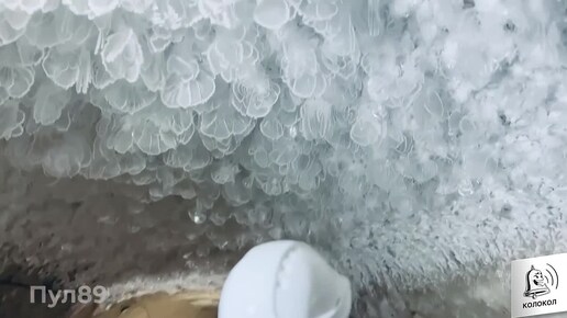 Кристаллы льда сложились в хрупкие «крылья» в подземном леднике рядом с Салехардом.