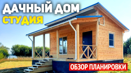 Проект каркасного дачного одноэтажного дома 6х7 с террасой студия, прихожая, холл