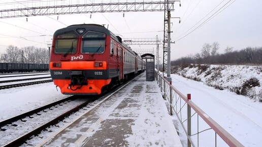 Электропоезд-коротышка ЭД9М-0232. Отправление. (1080р)