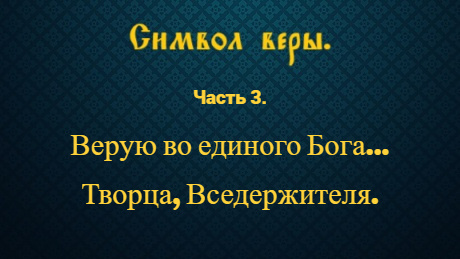Символ веры. Часть 3. Верую во единого Бога...Творца, Вседержителя.