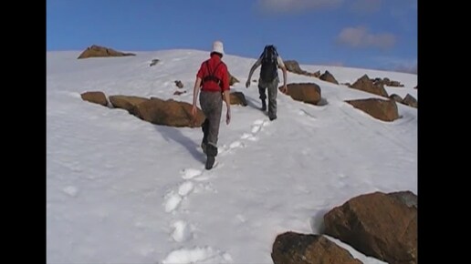 Видео Голетарова А. Вершина г. Пайер - платообразная, средне и крупнообломочная осыпь.