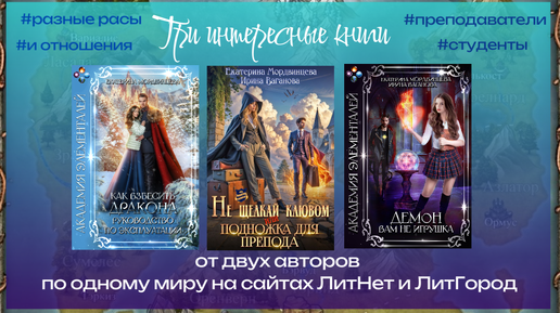 Три книги по одному миру в жанре "Магические академии" от Екатерины Мордвинцевой и Ирины Вагановой на сайтах ЛитНет и ЛитГород