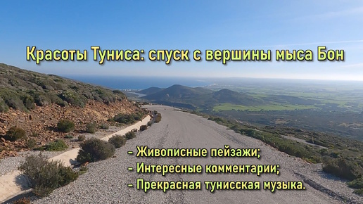 Красоты Туниса: горная дорога на мысе Бон, спуск с самой высокой точки мыса к посёлку Аль-Ауария.