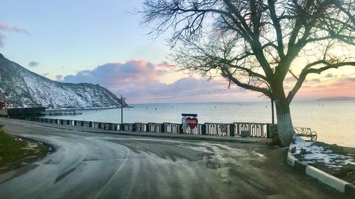 Самая красивая дорога к морю Восточного Крыма! Уютный южный зимний вечер после снегопада… Трасса Феодосия-Орджоникидзе.