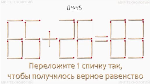 Задача 417. Переложите 1 спичку так, чтобы получилось верное равенство (65+26=83). Задачи и головоломки со спичками.