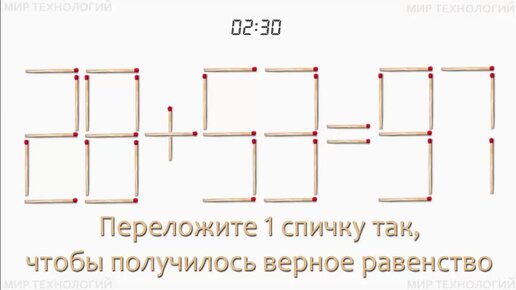 Задача 420. Переложите 1 спичку так, чтобы получилось верное равенство (28+53=97). Задачи и головоломки со спичками.