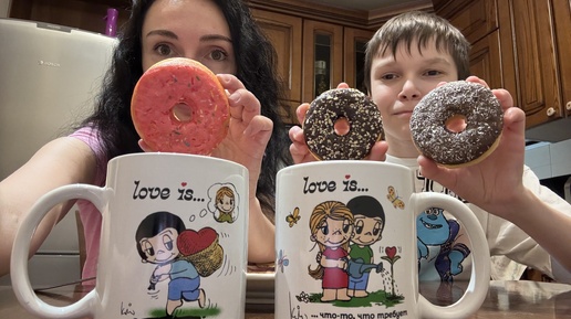 Мукбанг: Вечернее чаепитие ☕️🫖 из новых кружек с поньчиками донатсами🍩🍩🍩👍🏼