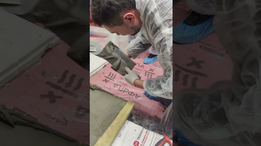 Обучаю новичков на семинаре по фасадам СФТК наносить клей на минвату и приклеивать листы на фасад