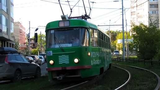 Трамвай Екатеринбурга Tatra T3SU СМЕ №650/641 маршрут №1 следует по улице Белореченская в депо