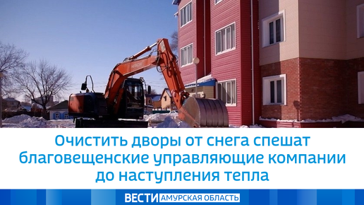 Очистить дворы от снега спешат благовещенские управляющие компании до наступления тепла