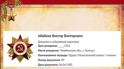 Герой Великой Отечественной войны Абабков Виктор Викторович.