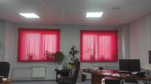 Вертикальные жалюзи красного цвета преобразили интерьер офиса.