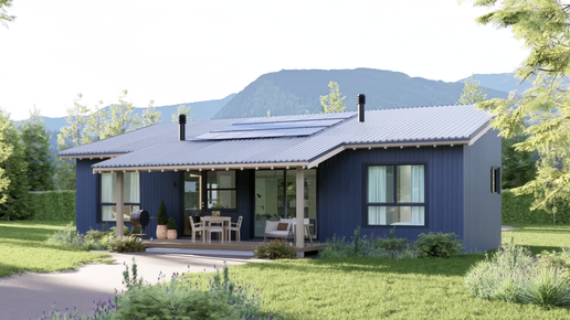 Небольшой современный коттедж с двумя спальнями 65м² + планировка