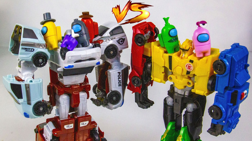 Мультик роботы Трансформеры шутят с человечками Among Us. Видео с игрушками для детей.