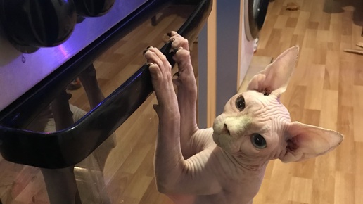 Домашнее видео с котенком Сфинксом, помогает пацан мне по кухне😂