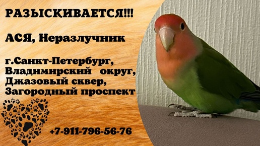 Пропал попугай! Ася, ЛенинградскаяСанкт-Петербург