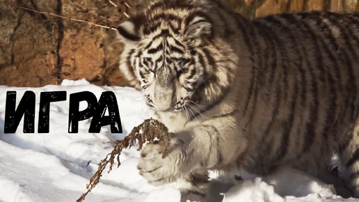 Бенгальская тигрица Дина играет с веточками. Зоопарк Удмуртии