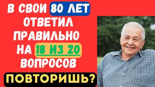 В СВОИ 80 ЛЕТ ОТВЕТИЛ ПРАВИЛЬНО НА 18 ИЗ 20 ВОПРОСОВ! ПОВТОРИШЬ? ТЕСТ НА ЭРУДИЦИЮ #13#эрудиция#тестнаэрудицию #викторина#знания
