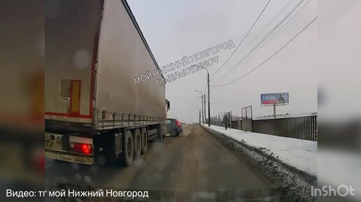 В Нижнем фура чуть не раздавила легковушку на улице Кузбасской. К счастью, водитель отделался легким испугом.