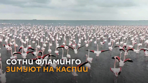 Сотни фламинго прилетели на зимовку на побережье Каспия