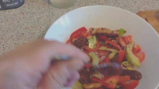 Обалденно вкусный салат с авокадо, жареным сыром Халуми и с брусничной заливкой