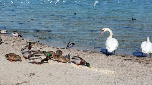 Лебеди. Зима. Бухта Омега. Севастополь.