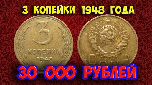 Стоимость редких монет. Как распознать дорогие монеты СССР достоинством 3 копейки 1948 года.