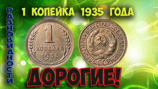 Как распознать редкие дорогие разновидности 1 копейки 1935 года. Их стоимость.