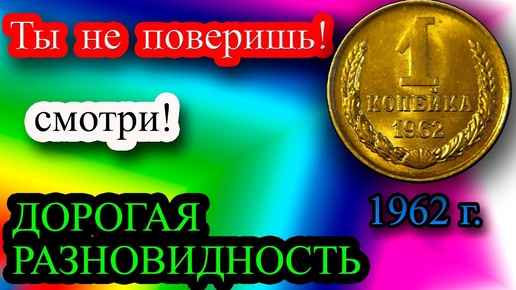 Ты НЕ ПОВЕРИШЬ! Это дорогая разновидность 1 копейки 1962 года стоит в 40 000 раз дороже номинала!