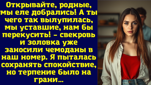 Открывайте, родные, мы еле добрались! А ты чего так вылупилась, мы уставшие, нам бы перекусить – свекровь и золовка уже заносили чемодан