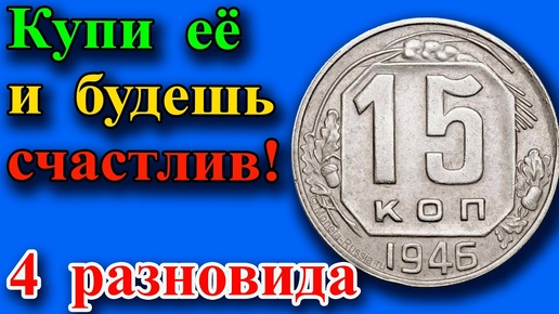 ТЫ СЧАСТЛИВЫЙ ОБЛАДАТЕЛЬ ЭТОЙ МОНЕТЫ В СВОЕЙ КОЛЛЕКЦИИ. 4 РАЗНОВИДНОСТИ 15 КОПЕЕК 1946 ГОДА.