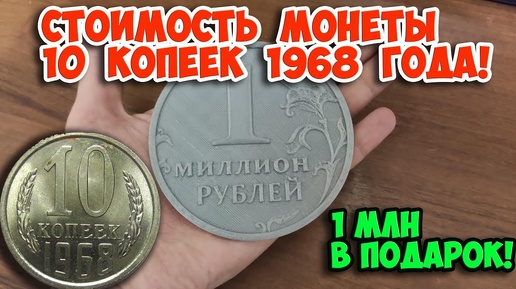 МОНЕТА 1 МИЛЛИОН РУБЛЕЙ И СТОИМОСТЬ 10 КОПЕЕК 1968 ГОДА!