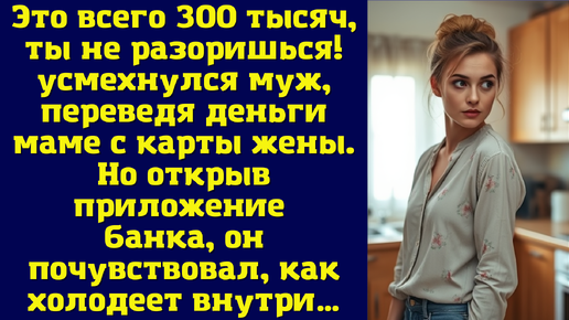 Это всего 300 тысяч, ты не разоришься! — усмехнулся муж, переведя деньги маме с карты жены