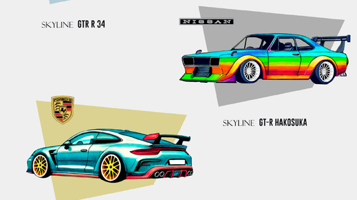 Nissan Skyline GTR R34, Nissan Skyline GT-R Hakosuka, Porsche 911 GT2 Адреналин на колёсах: энергия и драйв! 1999, 1971, 1995