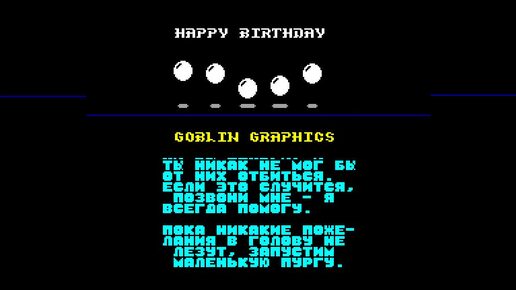 Happy Birthday Goblin Graphics - Cardinal [#zx spectrum AY Music Demo]