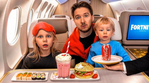 24 часа в САМОЛЕТЕ! Летим всей семьей в отпуск *Первый класс*