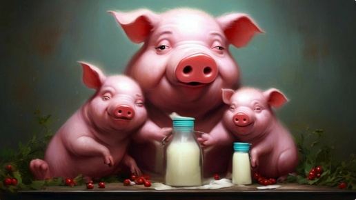 Поросята сосут хряка. Подтверждение , что это действительно хряк. Вьетнамские вислобрюхие свиньи.