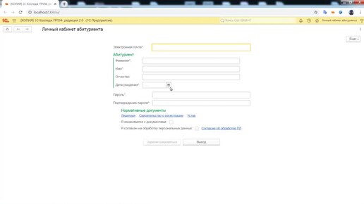 Работа абитуриента в личном кабинете