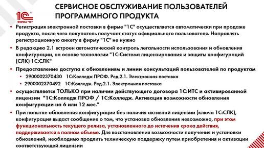 Сервисное обслуживание 1С:Колледж и 1С:Колледж ПРОФ редакция 2.1