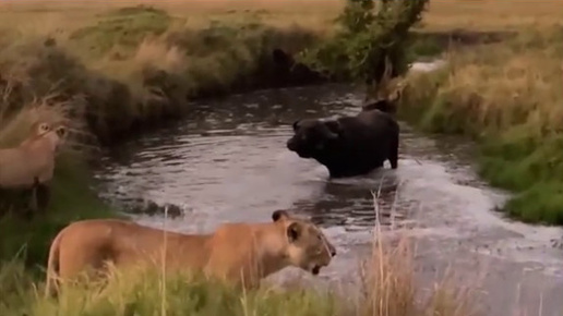 Львы загнали Буйвола в водоем, но там таится другая опасность