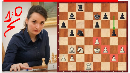 Екатерина Лагно изящно жертвует качество ходом 17.♘e5 Елизавете Паец в Монако, 2025. Ферзевый гамбит, 1-0 - доигрываю до мата партию