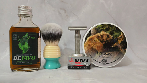 Подружился с Тайгой, лезвия РПЛ, мыло Находка от Ольги, помазок Yaqi синтетика 24 мм, лосьон DeJavu HLS