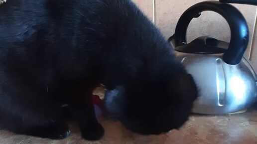 Кошка лакает...колбасу🤔