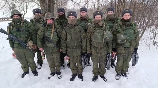 Подразделение солдат срочной службы поздравили с Днём Защитника Отечества и передали подарки.