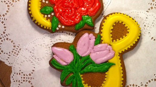 Пряники к 8 марта. Рисунок по трафарету.