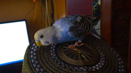Кирюша "сел на голову и свесил ножки" (Наш попугайчик полностью освоился...)